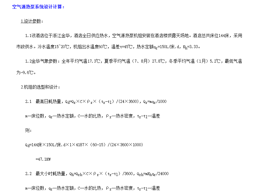 空氣源熱泵系統(tǒng)設(shè)計(jì)計(jì)算